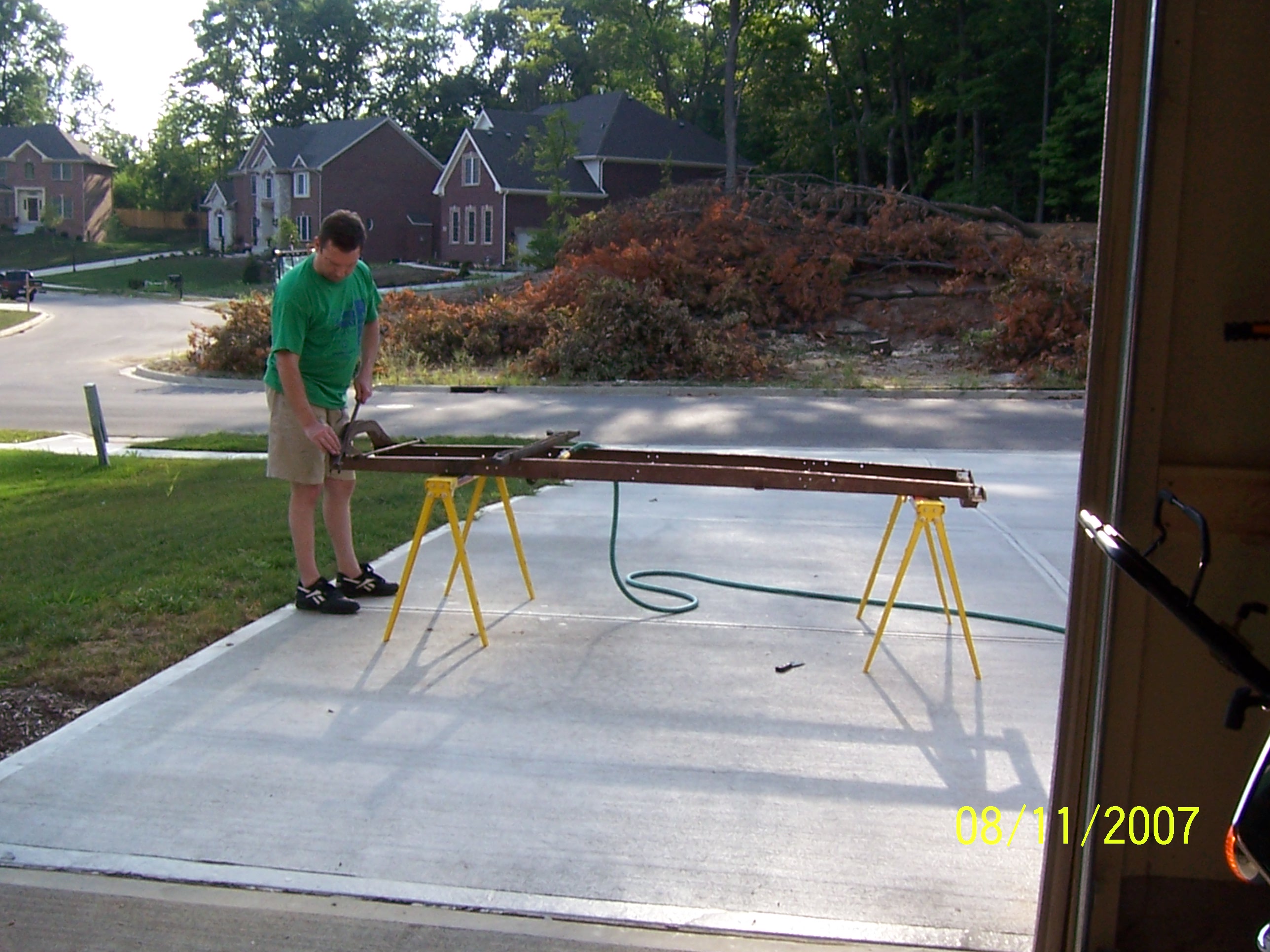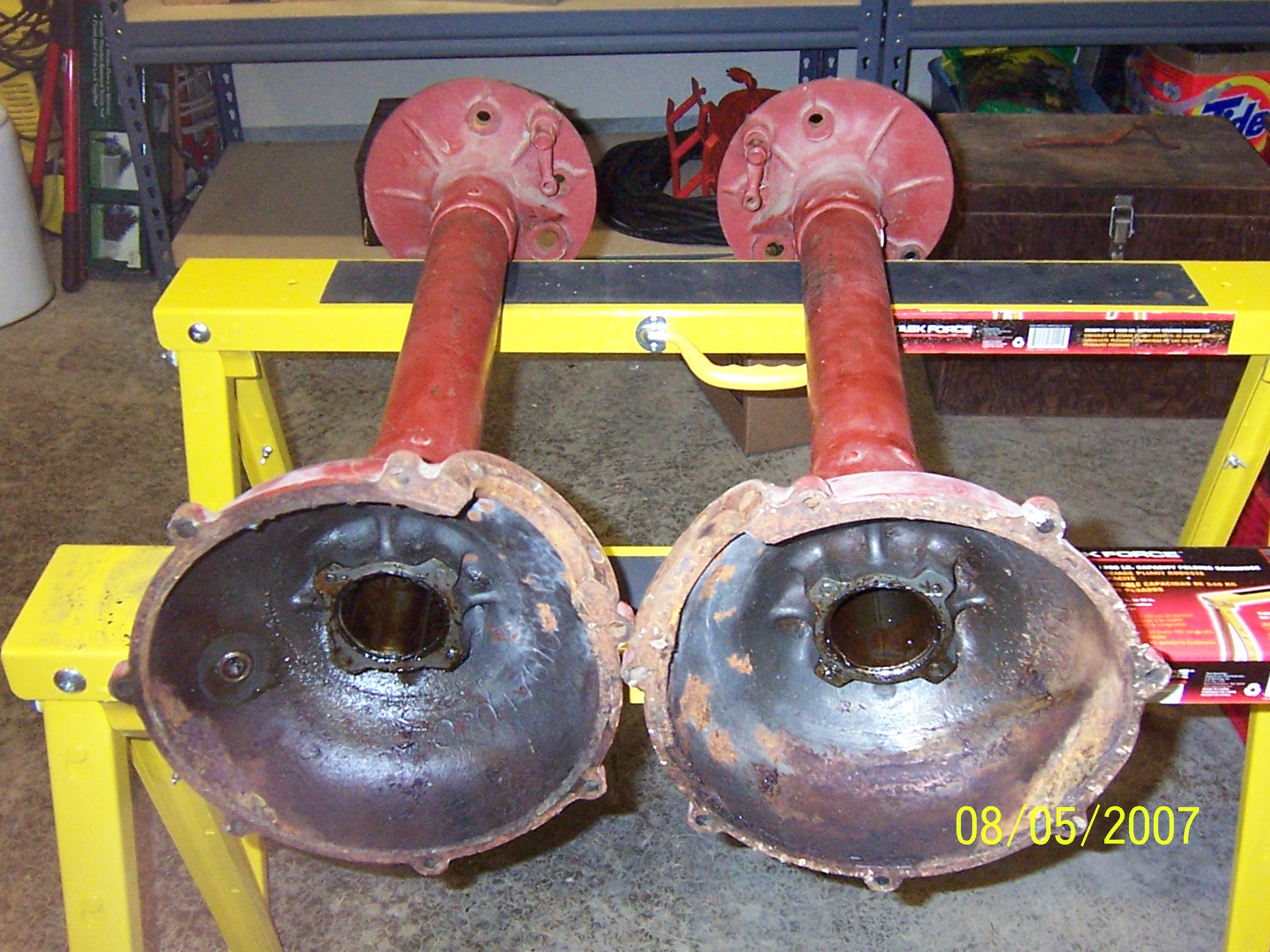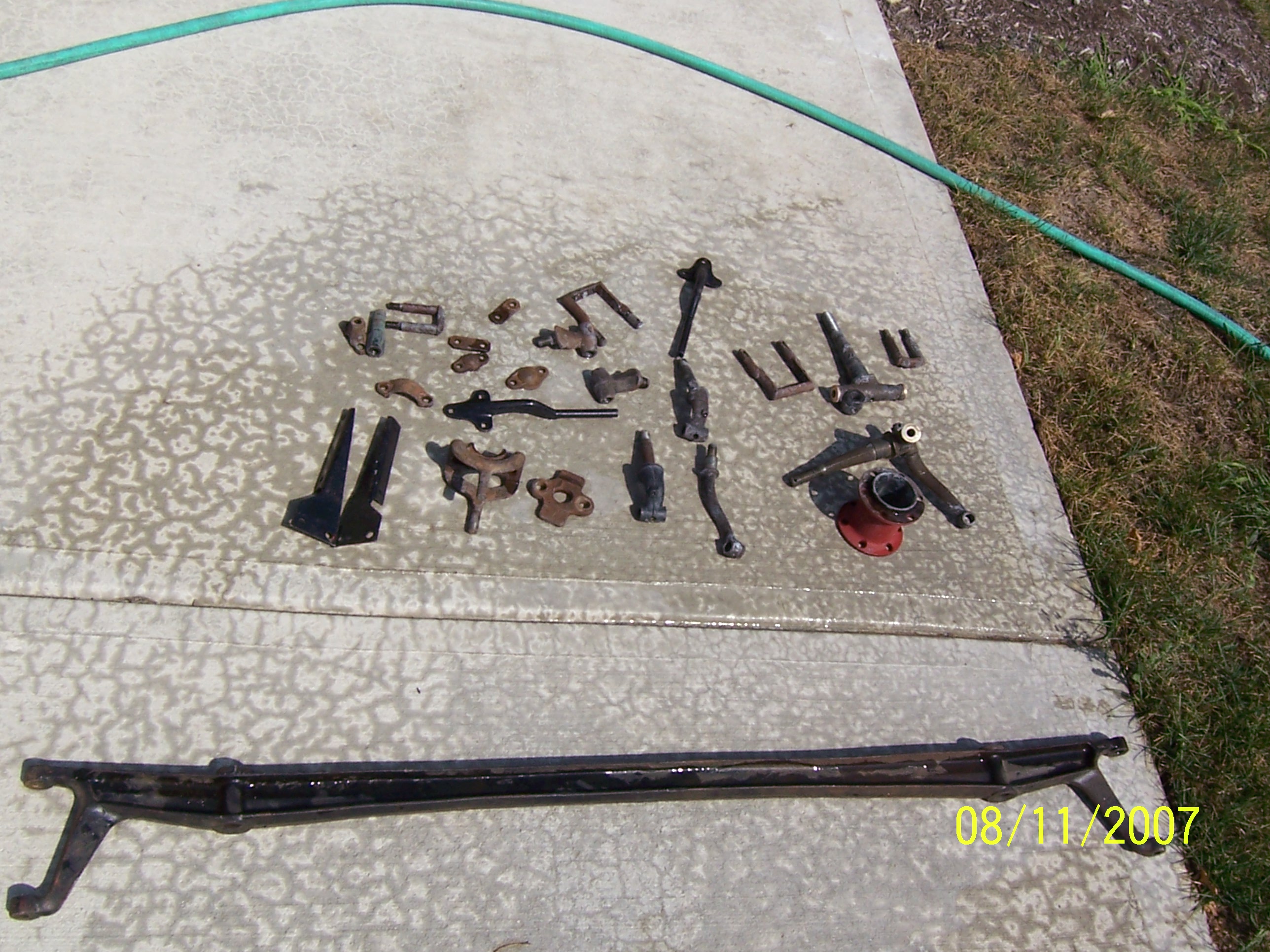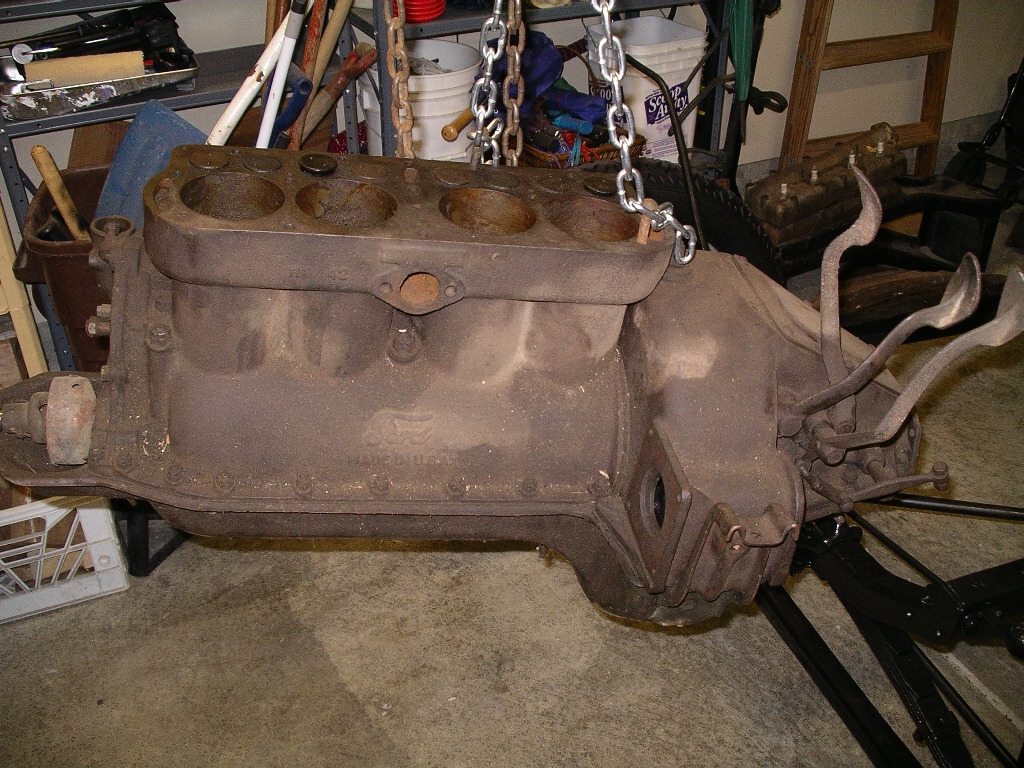 The history of my runabout is .. fragmented, to say the least. I purchased it from Ray Gaertner, a long time T and early Chevy collector & restorer, then of Augusta, MO. He actually assembled the car from odd parts. The chassis had been converted to a farm wagon, and '27 Chevy wire wheels were welded to the Model T hubs when the wooden spokes rotted out. When Ray got the chassis, it had been rescued from a ditch at the back of a farm. The engine, radiator, and hood were found at a farm auction, still in use, where they were mounted on a cut off T frame and used to power a sawmill. Fenders, running boards, etc. were picked up at swap meets, and Ray built the box bed and seat over the gas tank. He drove the car in parades & such for fun, decorated with lots of 'Okie' accessories (note the suitcase on the running board!) It looked like the Beverly Hillbillies' truck, (which was actually a cut-down 1921 Oldsmobile touring car found pretty much as you saw it on the show!) I have since acquired a complete runabout body, windshield, proper wooden wheels, better fenders, and another complete engine. That one was pulled from a scrap dealer that cleared out an old machine shop. The block and head were both cracked (probably frozen), but it had a Sure-Mike racing crankshaft in it. Yes, people used to race Ts quite a bit, and the Sure-Mike was made in '28 and '29 as a hot-rod accessory. It's claim to fame? Counterweights! A stock T crankshaft is unbalanced, giving it a peculiar shaky sound at low idle that is easily distinguished from any other vehicle. I also found a good block, which now has two cylinder sleeves, all cylinders bored .030 over, two valve seats, and new Babbitt bearings to go around that crank. With the milled head and aluminum pistons (original cast iron ones weren't available at .030 oversize) this baby ought to scream - who knows, I might make 50mph! The car (then an express wagon) was purchased from Ray in April, 1980, and was driven quite a few miles around the neighborhood (sans license, title, registration, insurance, etc.) The first work began in mid-1982, when I pulled the rear end out for rebuild. The contents? Mud. Hardly any grease, but lots of mud. Shortly thereafter, I moved, and it was easier to finish disassembling the car than it was to get it back in one piece. It was to remain in pieces for the next 25 years. I moved that car, in pieces, eight times. Some minor work was done (wooden wheels were acquired and restored, and I found a runabout body) but basically it remained a pile of rusty parts. Spurred by the upcoming celebrations of the 100th Anniversary of the first Model T only 50 miles from my home, and with a brand new 3 1/2 bay garage to break in, I started in earnest July 14th, 2007.