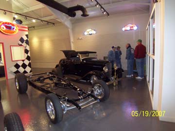 Our first stop was the Brookville Roadster Company, which manufactures authentic Model A and 32 Ford bodies and parts. Brookville builds about 500 bodies a year, and ships them all over the world. They take pride in making 100% authentic sheet metal, some of which are made using original Ford dies. Most are used in hot rods, but all are guaranteed to fit on the original vehicles. Brookville also builds complete cars and roadster pickups on oversize frames with high performance engines.